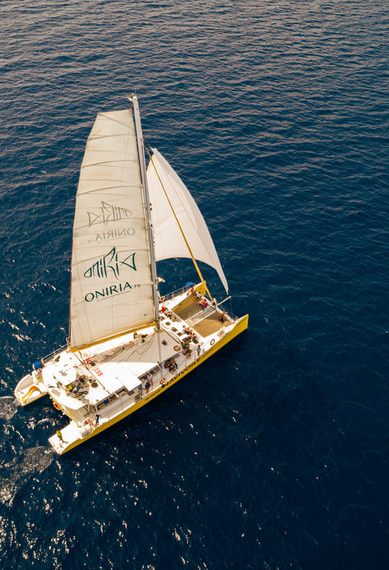 En effet, une fois à bord du catamaran Navivoile, la magie opère : les moteurs se taisent, le sillage s’étire et seul le craquement des voiles rompt le silence. Vous quittez l’agitation pour une sensation immédiate de liberté.