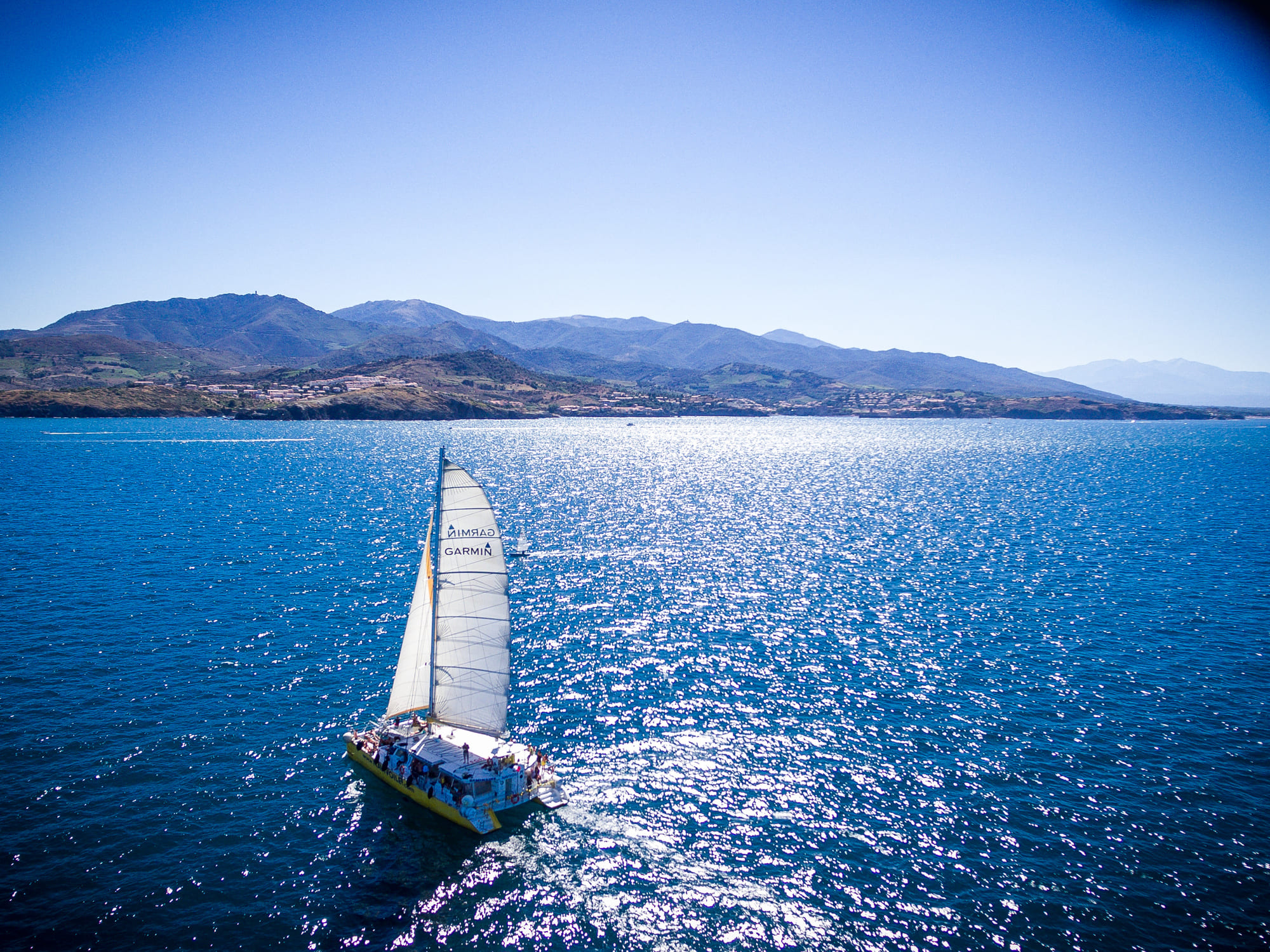 Depuis le port de Canet-en-Roussillon, le catamaran quitte doucement le quai pour prendre le large et longer les paysages emblématiques du littoral des Pyrénées-Orientales Très vite, la côte s’éloigne et laisse place à l’immensité de la Méditerranée.