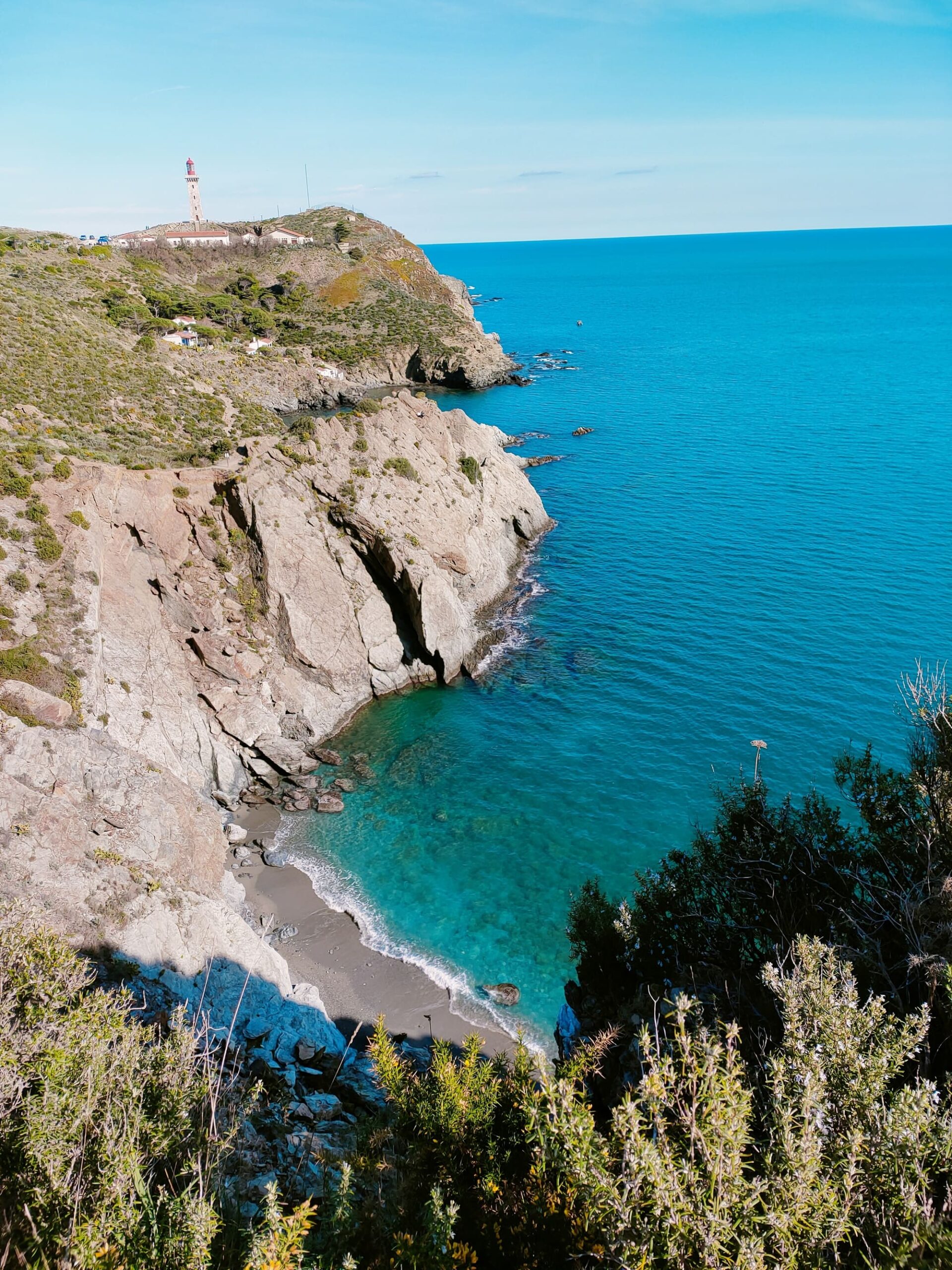 D’abord, après avoir consacré 3h30 à la recherche et à l’observation des Grands dauphins, le catamaran effectue une brève escale de quelques minutes au port de Port-Vendres (sans escale pour les passagers). Ensuite, dès notre appareillage, nous longeons la colline Béar pour franchir son célèbre cap. À cet endroit, vous admirerez son joli phare tout rose construit en 1901 puis aussitôt au sud du cap Béar des grottes marines spectaculaires, sculptées par la nature dans la roche de schiste. Enfin, nous rejoignons notre point d’ancrage situé dans la superbe baie de Paulilles. En effet, ce site classé vous accueille dans un cadre idyllique et préservé, offrant une parenthèse hors du temps au cœur de la côte Catalane.
